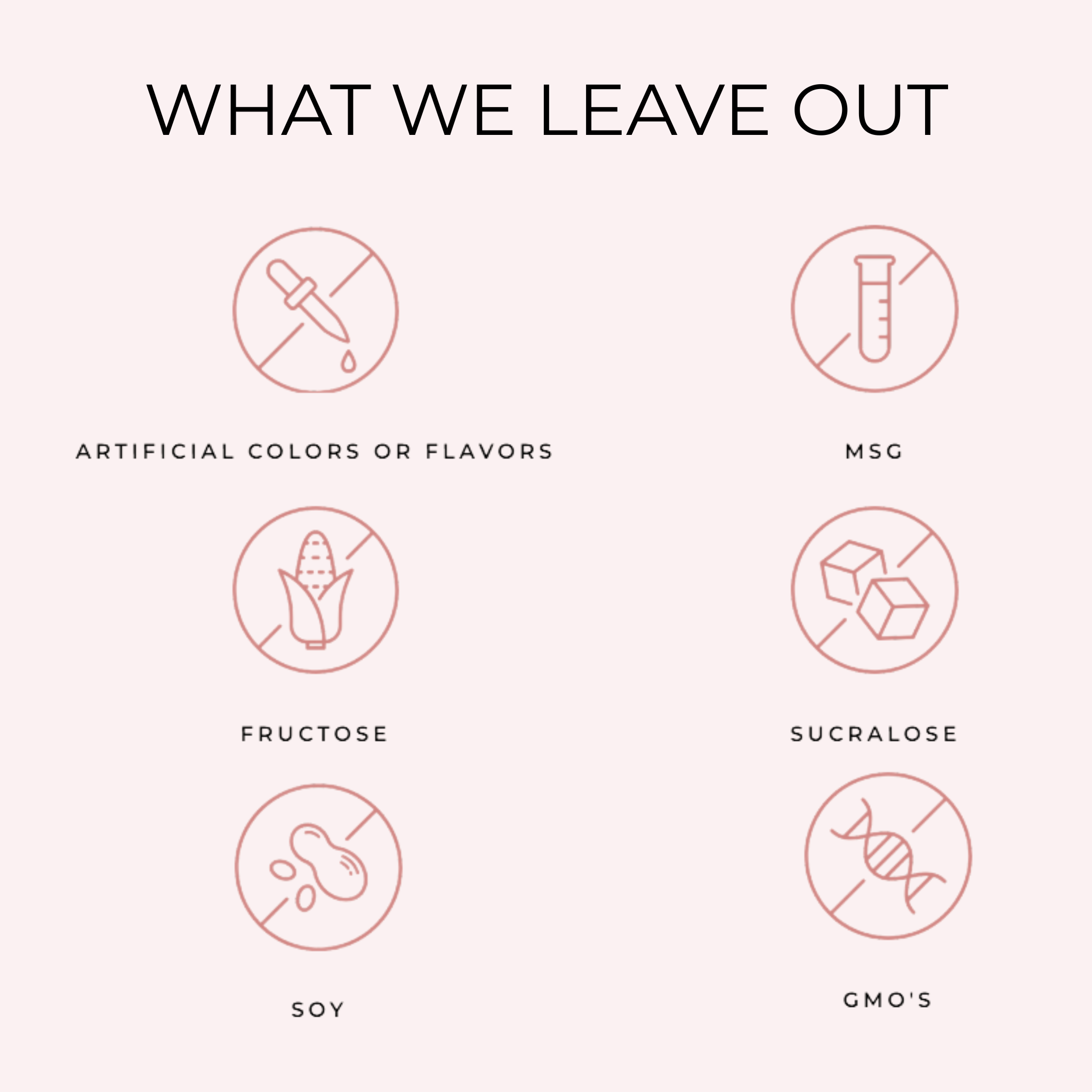 - NO Artificial colours, MSG, Soy, Fructose, Sucralose, GMO’s!