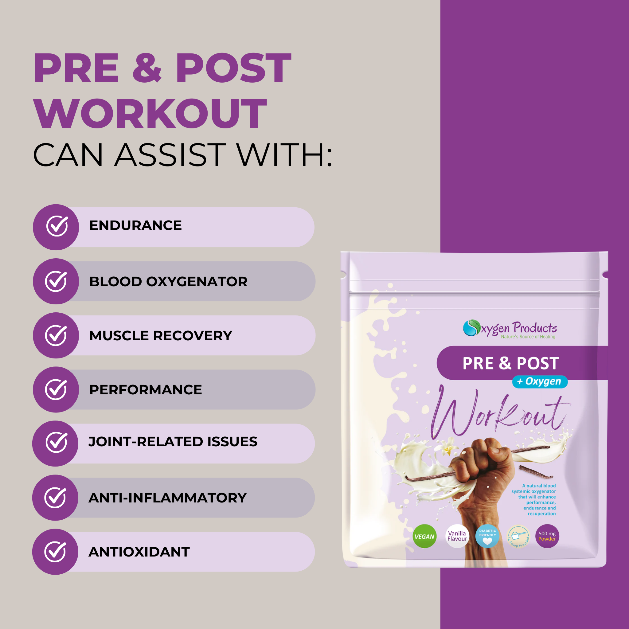 | Contents | Oxygen Products Pre & Post Workout + Oxygen (Vanilla) 200g PLUS Free Shaker |
